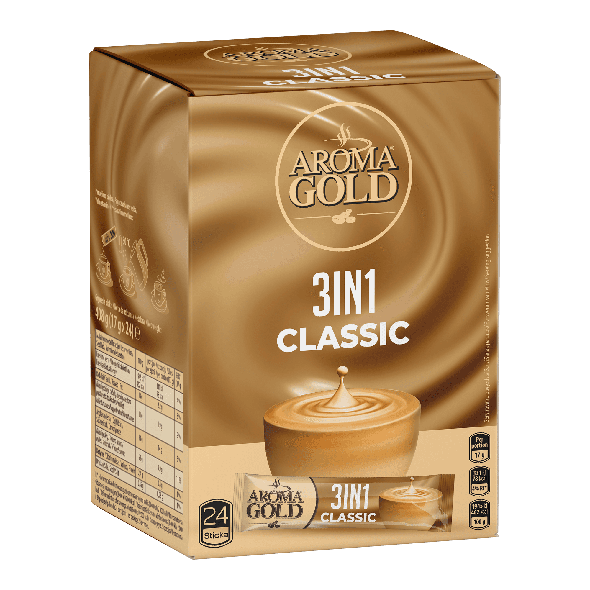 Instant coffee drink AROMA GOLD Classic 3in1 (24 pcs.), 408 g